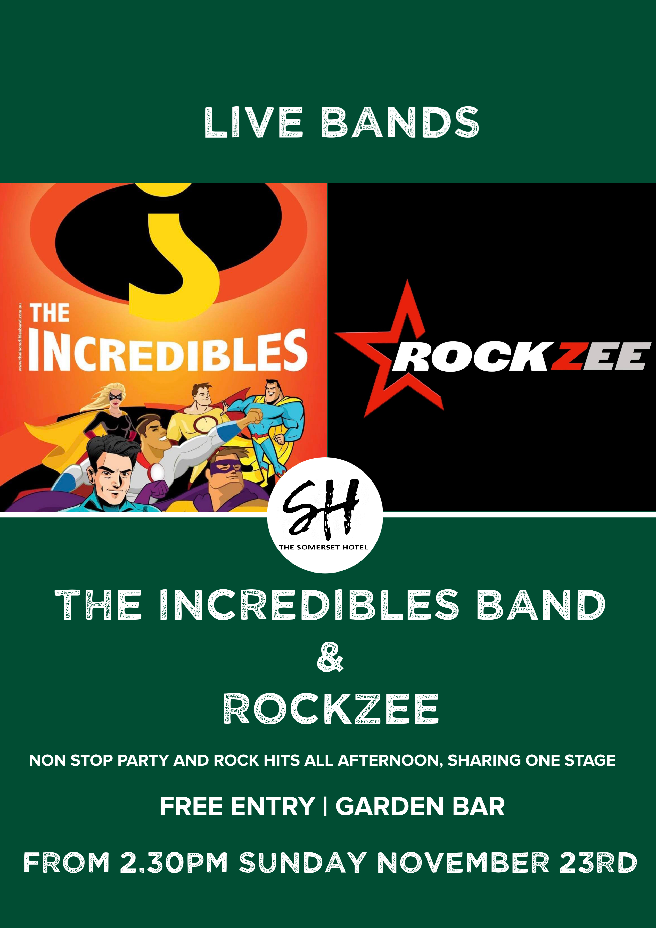 - CHECK OUR SOCIALS and below for LIVE BANDS in the Sports Bar on Friday nights (FREE ENTRY)