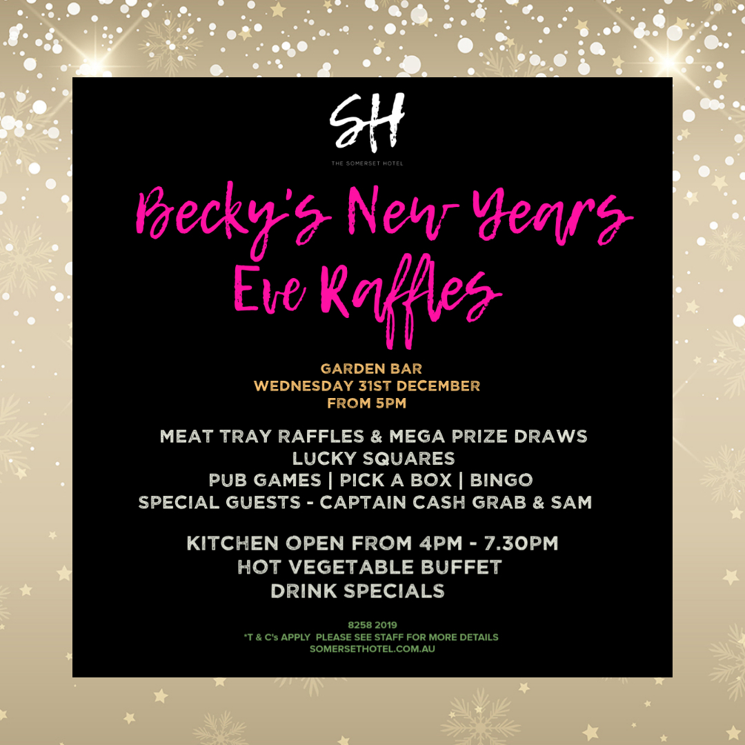 - Becky's Raffles (a night of fun with games, Cash Grab and your chance to win raffle prizes) The biggest meat tray raffle around