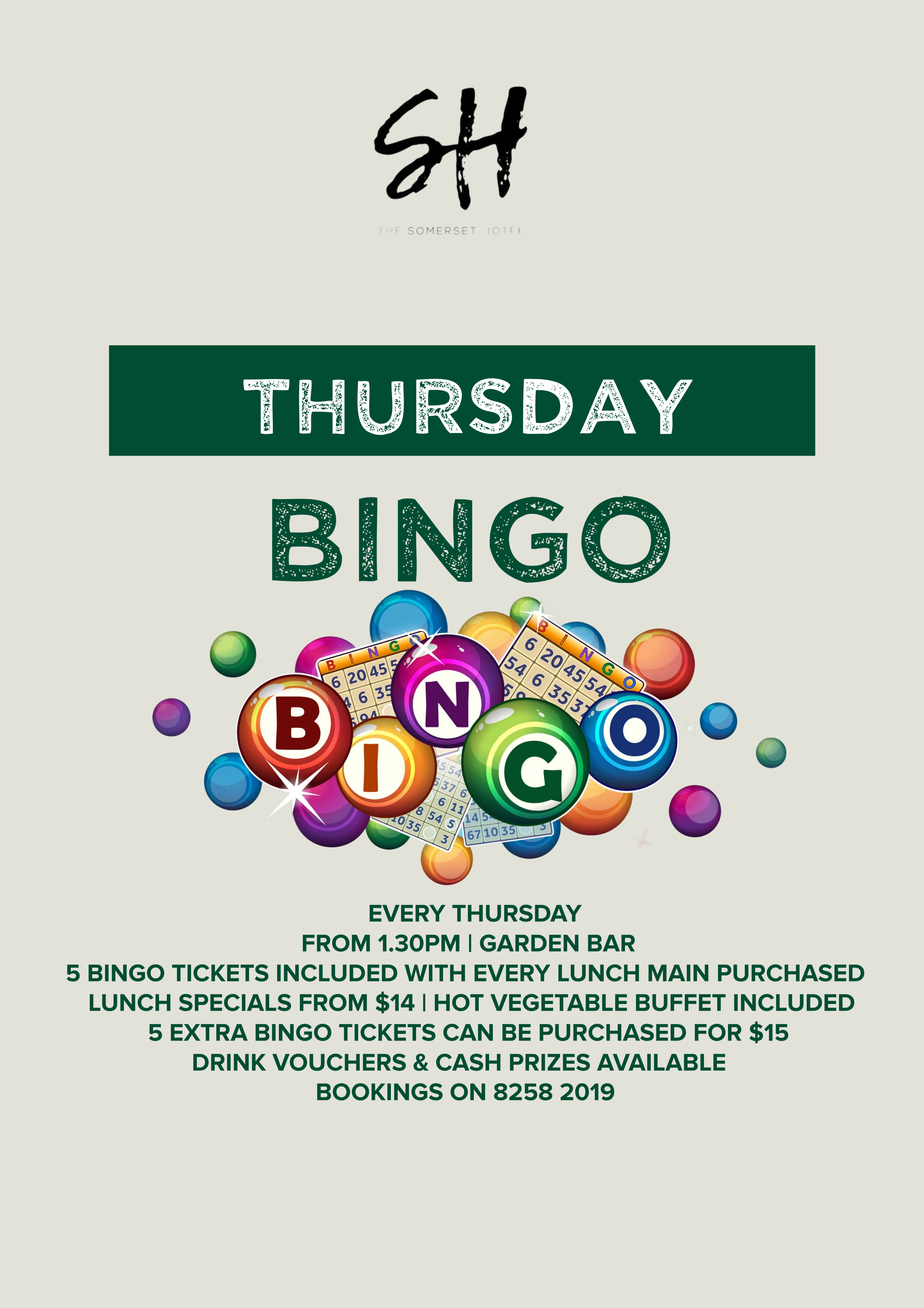 - Sports Bar open from 3pm (Social Club meat tray & booze wheel raffle, $22 Meal & Pint deals, Happy Hour 5-8pm, pool table & competition dart board(s) set up)