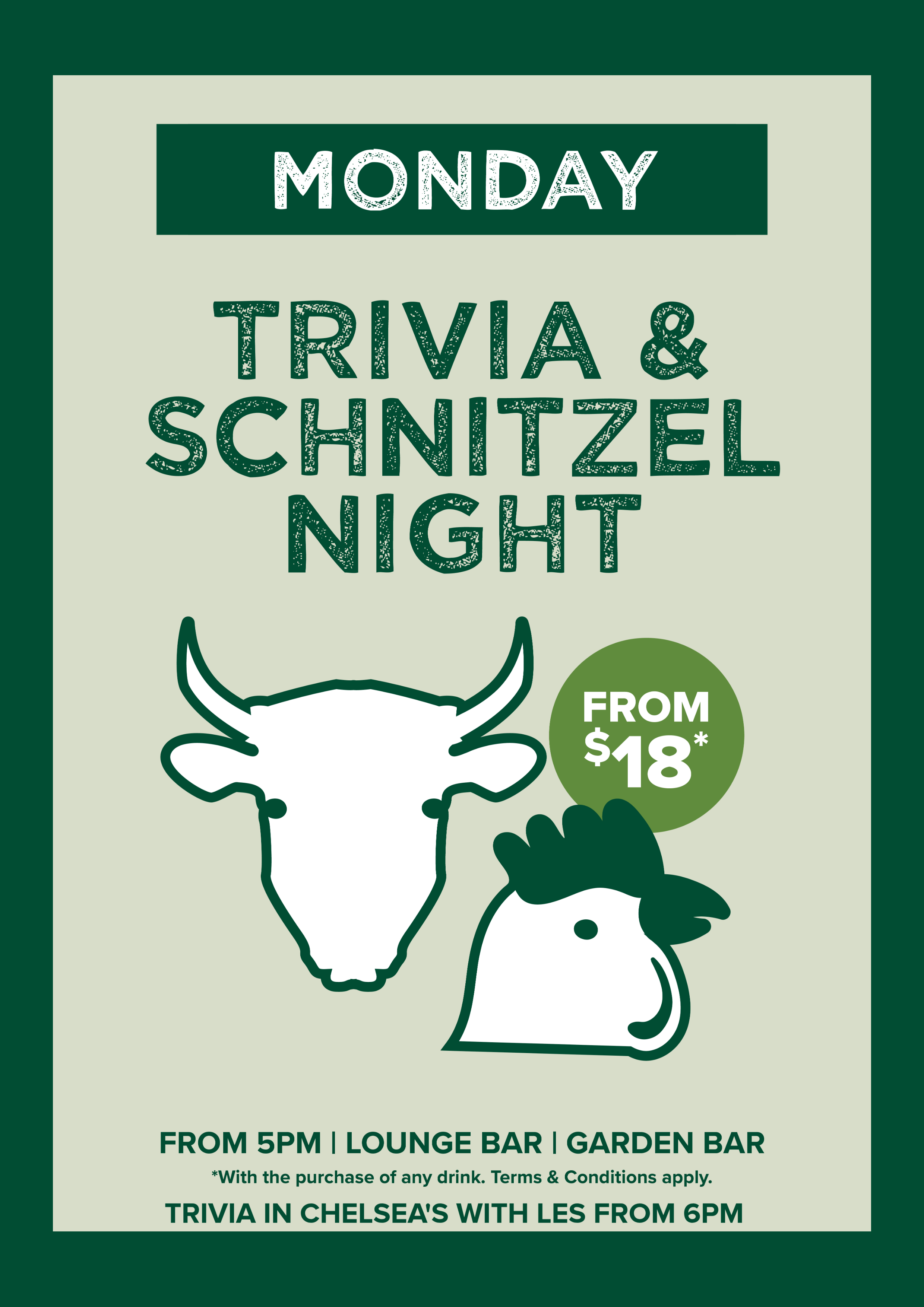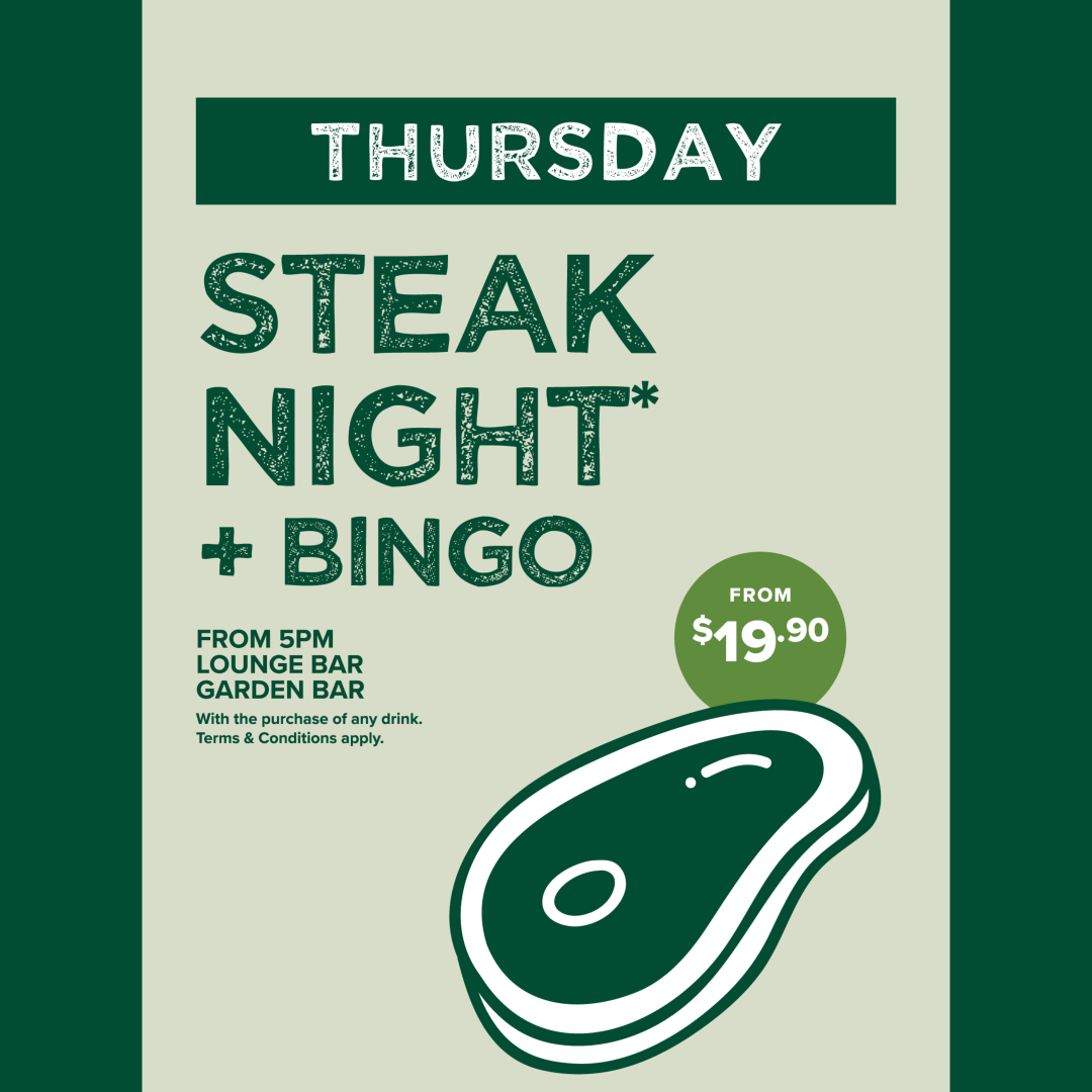 - Sports Bar open from 3pm (Social Club meat tray raffles, $22 Meal & Pint deals, Happy Hour 5-8pm, pool table & competition dart board(s) set up)