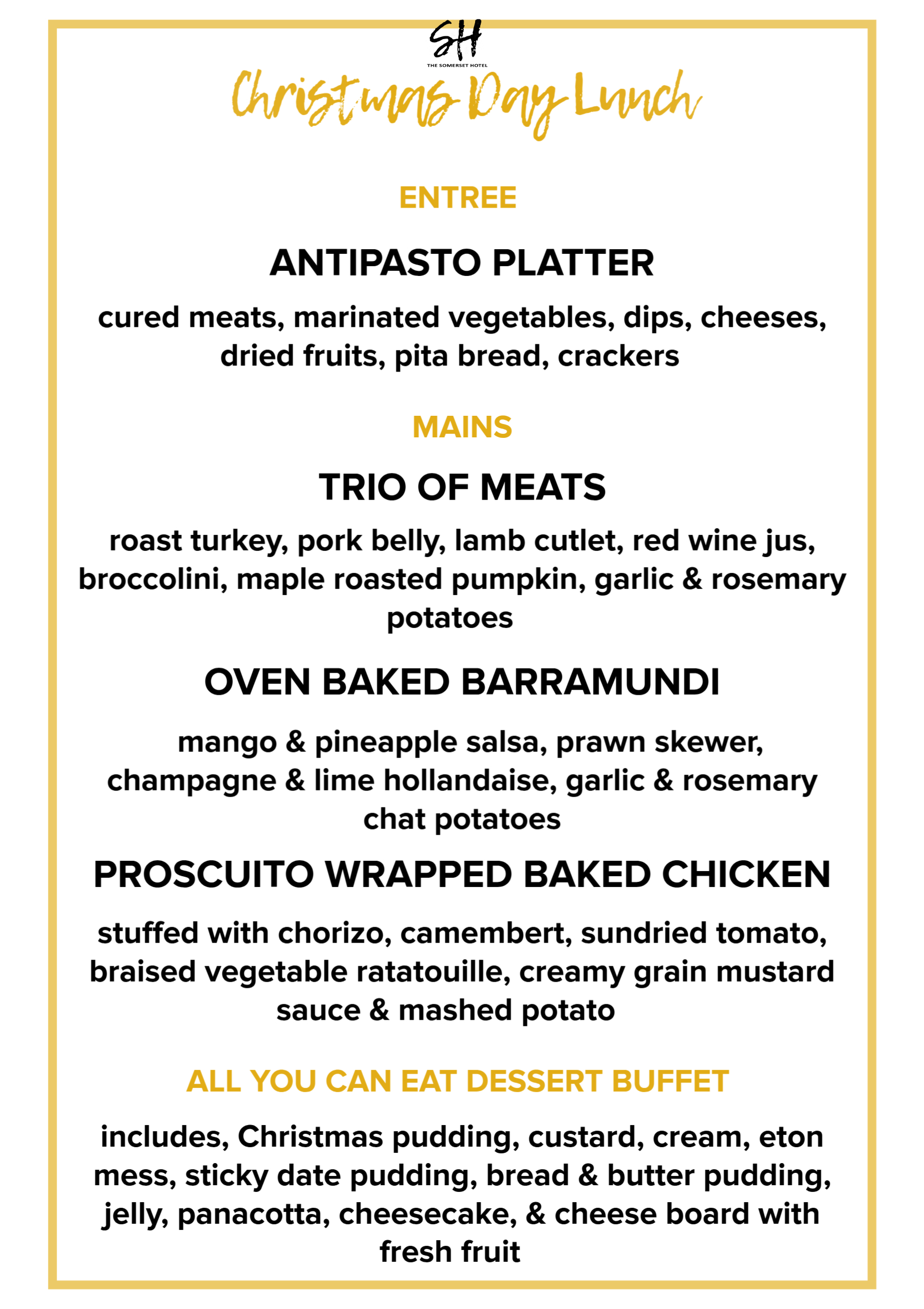 - Sports Bar open from 3pm (Social Club meat tray & booze wheel raffle, $22 Meal & Pint deals, Happy Hour 5-8pm, pool table & competition dart board(s) set up)