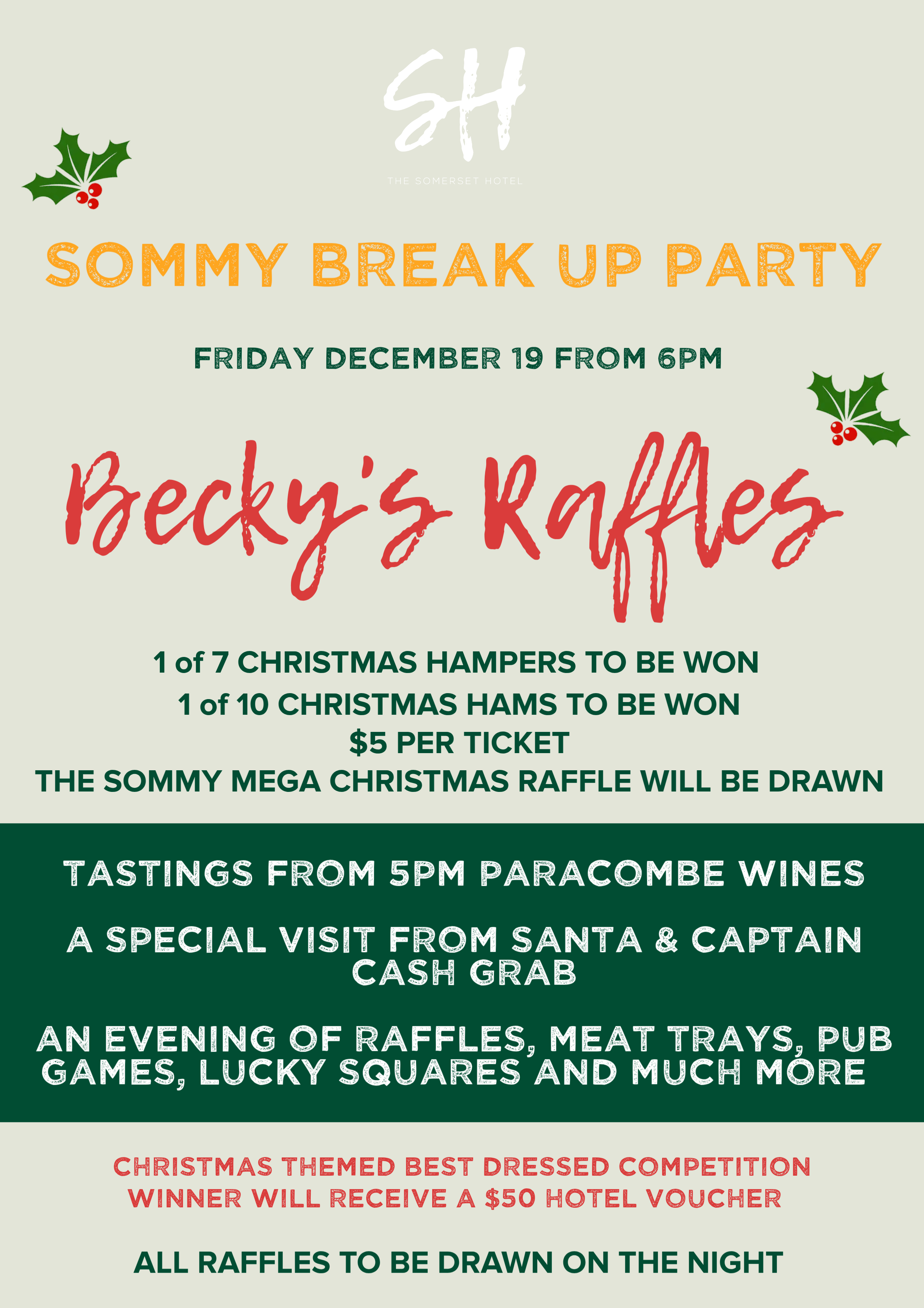 - Becky's Raffles (a night of fun with games, Cash Grab and your chance to win raffle prizes) The biggest meat tray raffle around